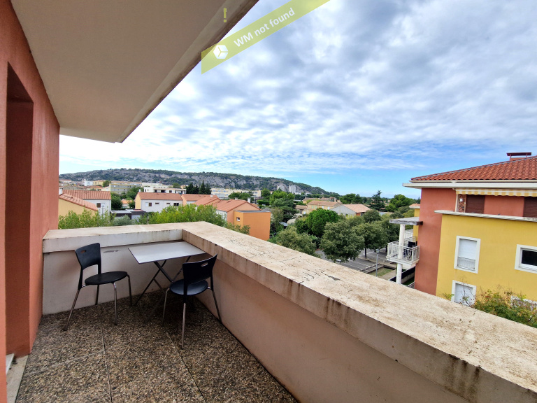 En exclusivité : studio en dernier étage d'une belle résidence sécurisée avec ascenseur, proche du centre-ville, au calme avec vue imprenable sur la colline Saint Jacques, les Alpilles ainsi que le Mont Ventoux.
