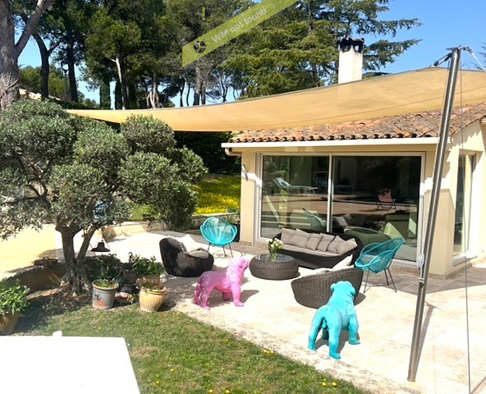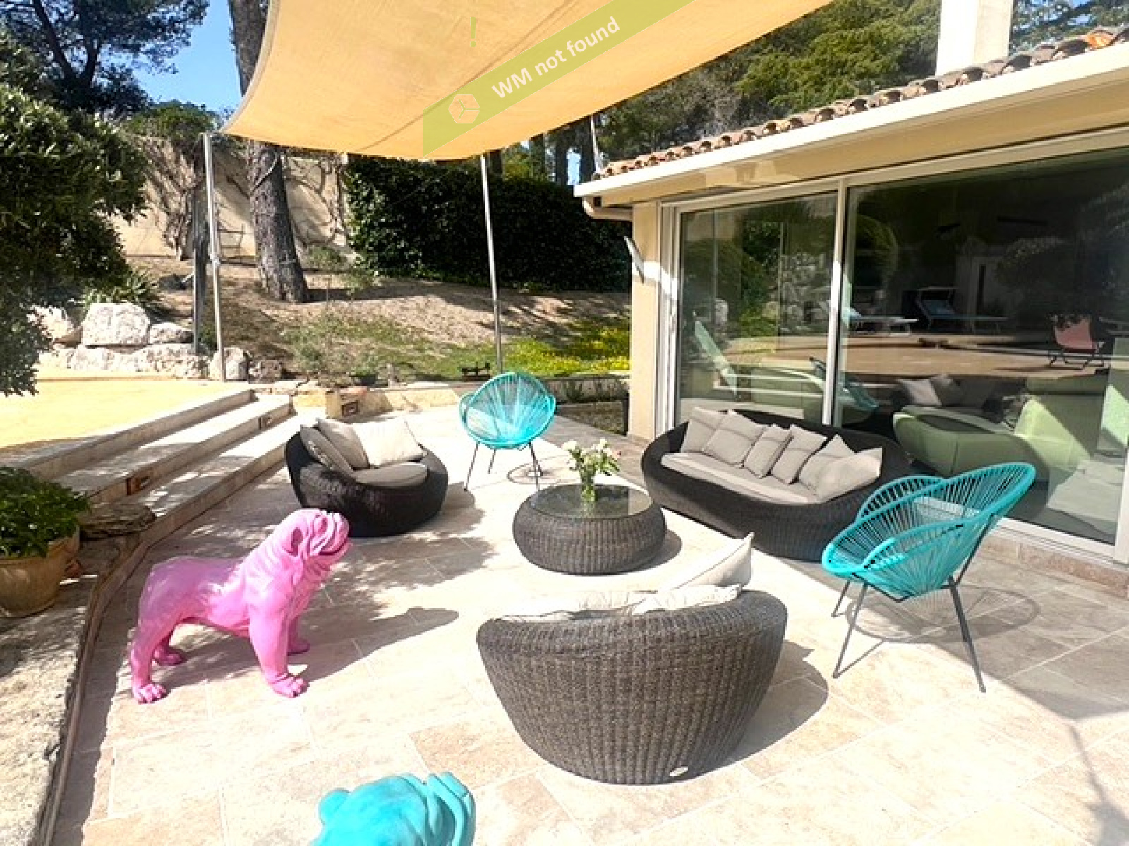 A l'extérieur, une vaste terrasse agrémentée de voiles d'ombrage s'ouvre sur un jardin méditerranéen qui accueille une piscine chauffée avec plage intégrée de marque BRENS munie d'un volet motorisé.