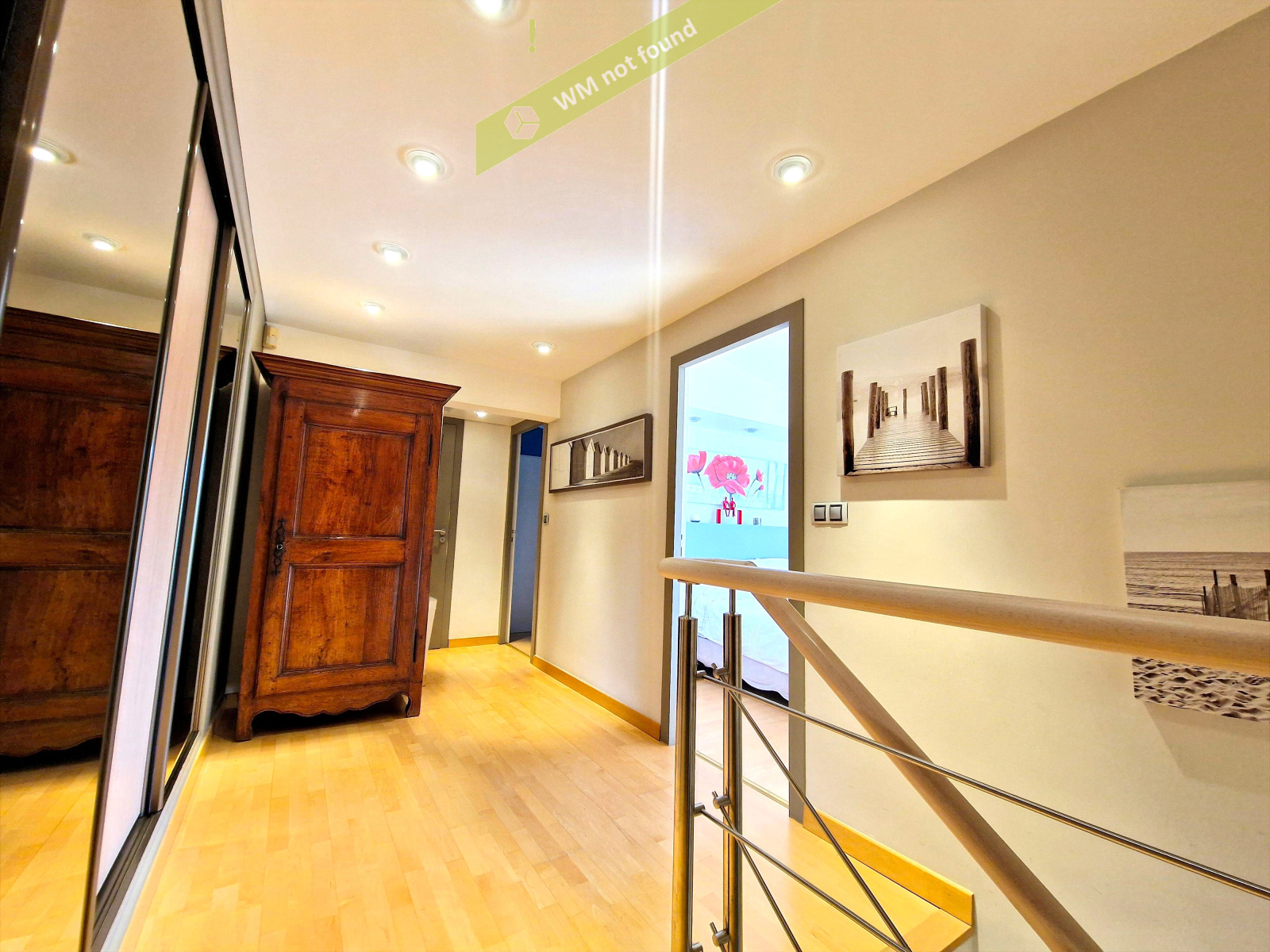 L'étage offre une lunineuse chambre parentale avec balcon, une salle de bains avec wc, un grand palier dressing desservant également une sixième chambre et un bureau.