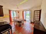 Entièrement de plain-pied, de construction traditionnelle en briques, elle se compose d'une entrée, d'une lumineuse pièce à vivre d'environ 40 m² donnant sur une terrasse exposée plein Sud, d'une grande cuisine, de quatre chambres, d'une salle d'eau et de deux wc séparés. Une annexe d'environ 52 m² et un garage complètent le bien, le tout implanté sur une belle parcelle de 4080 m², close et arborée. Des travaux sont à prévoir afin de valoriser le potentiel de cette maison idéalement située.